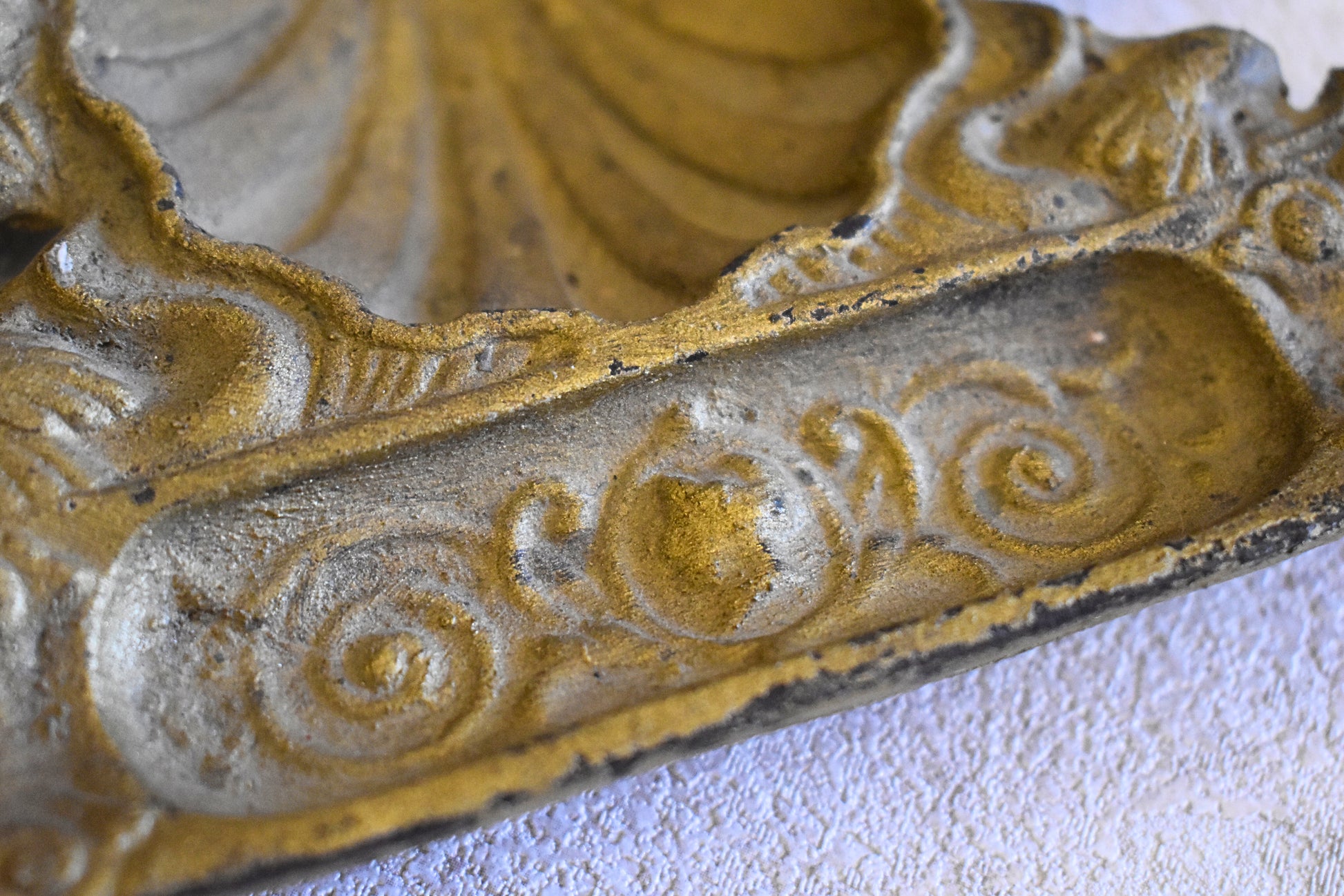 The overall composition is reminiscent of French inkwells crafted between the 1850s and 1870s, echoing the Second Empire’s flair for opulence. Though the exact maker remains unknown, the stylized shell centerpiece and curved lines place it squarely in the aesthetic of the mid-to-late 19th century. Its sturdy construction and dual inkwell design make it both a collector's piece and a functional relic of refined correspondence.